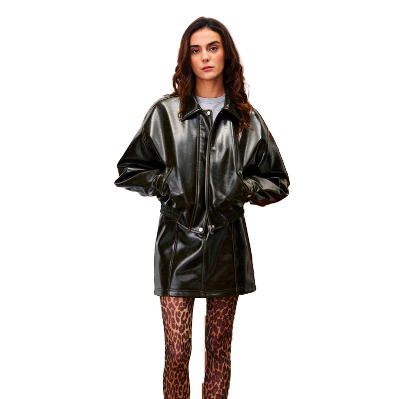 Jupe en simili cuir vinyle. Texture brillante. Poches sur le devant. Fermeture éclair cachée à...