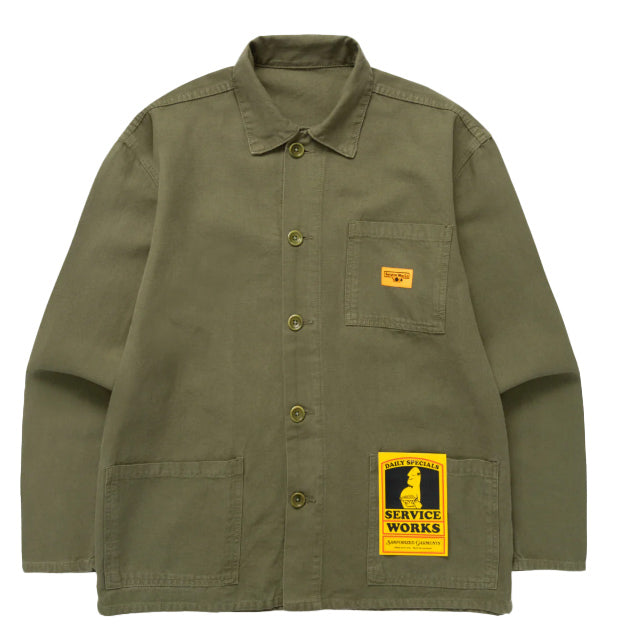 Chemise de corvée en toile Service Works, coloris Olive. De coupe régulière et fabriquée en...